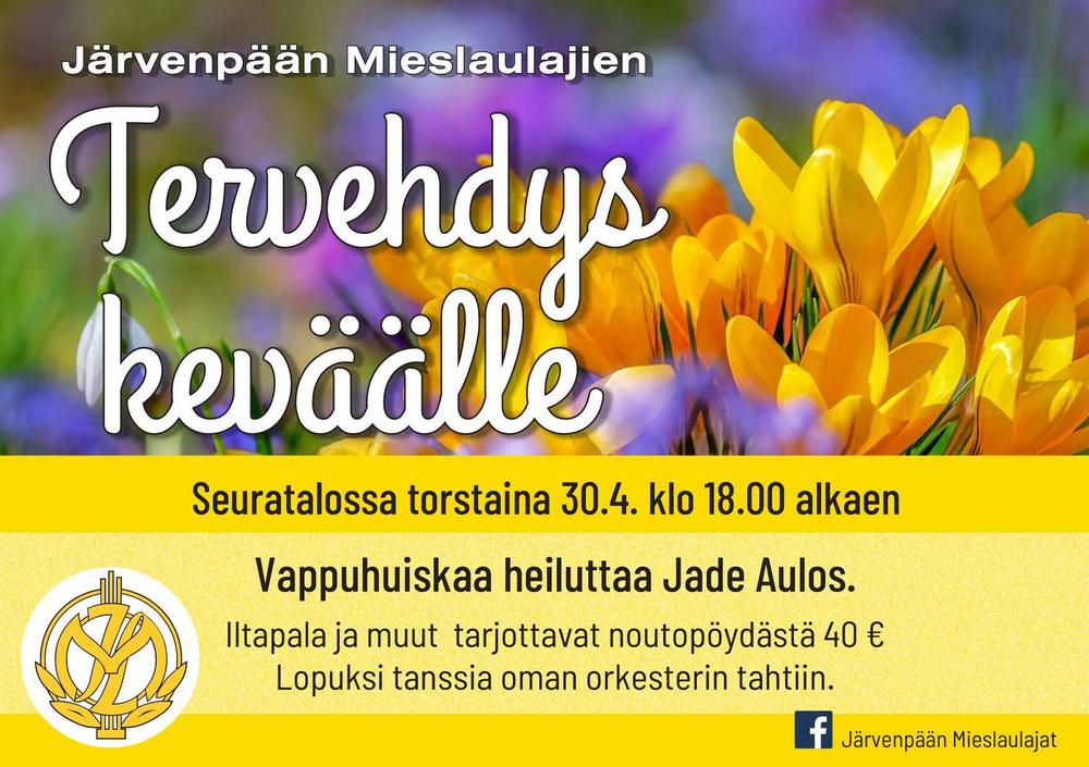 30.4.2026 klo 18 JML:n Perinteinen ja suosittu Wappukonsertti buffetteineen ja yhteislauluineen Seuratalolla. Lippuja on rajoitetusti, kysy niitä kuorolaisilta.
